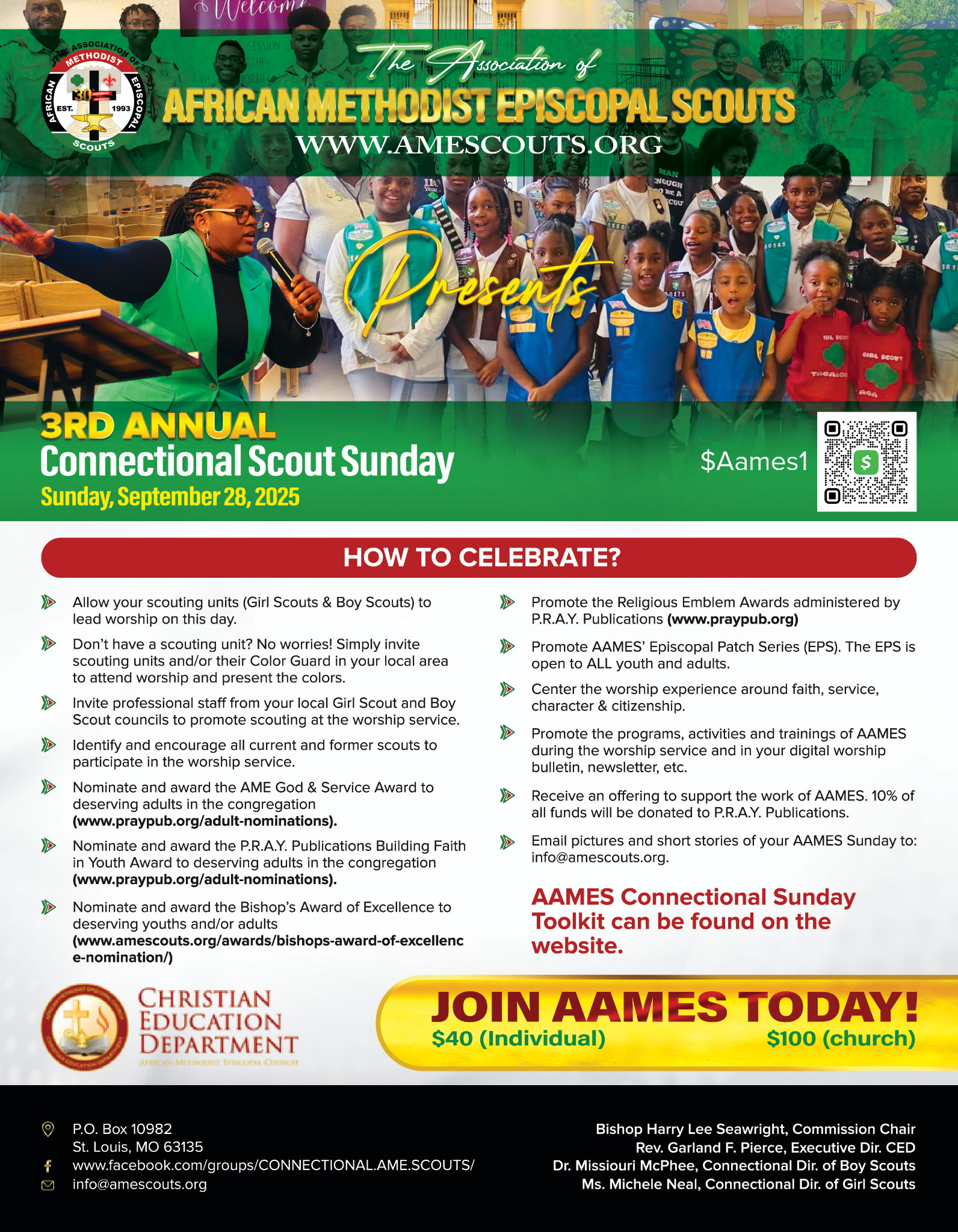• Promote the programs, activities, and trainings of AAMES during worship service and in your digital worship bulletin, newsletter, etc.